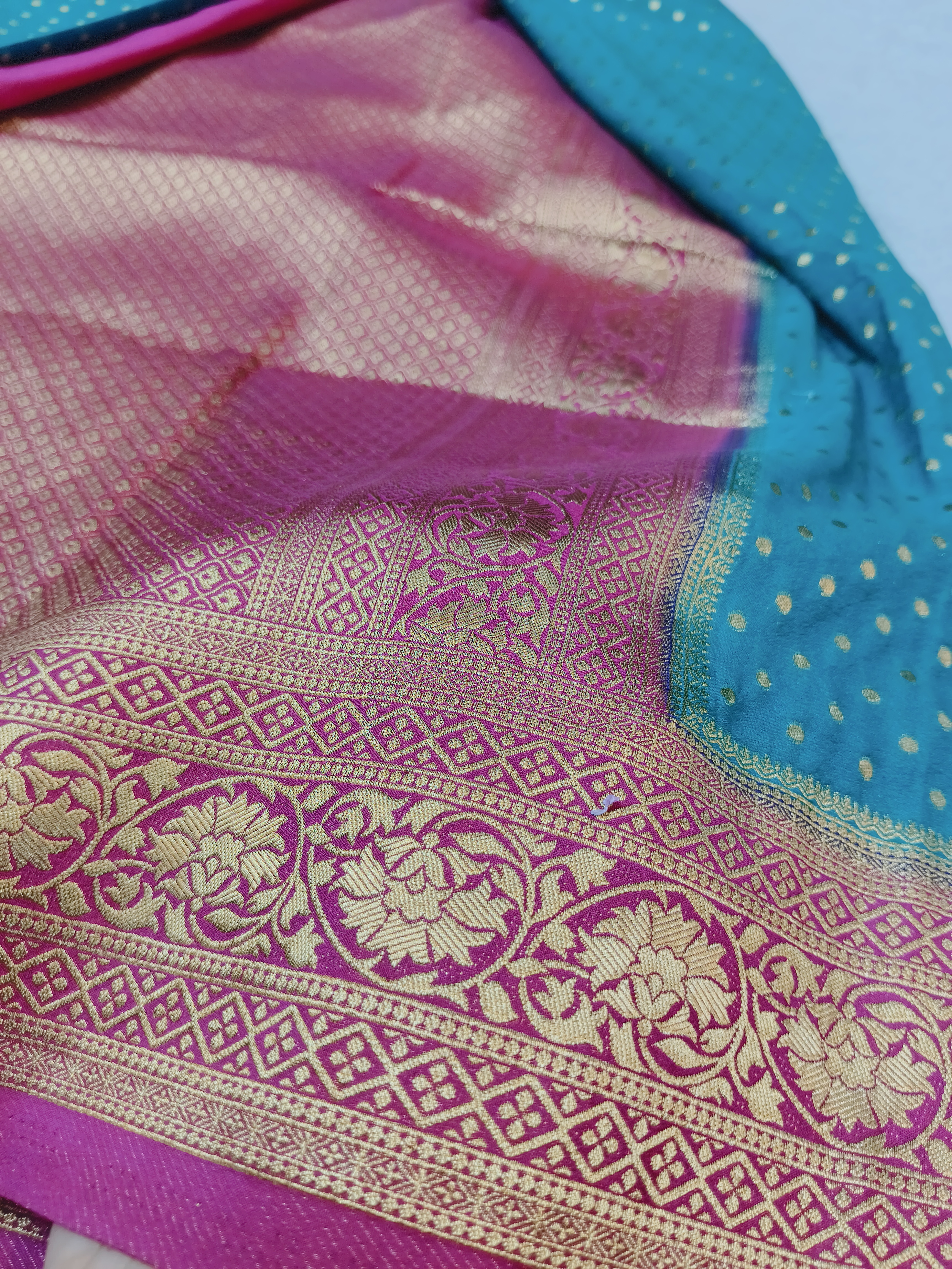 Premium Banaras Saree in Teal Blue & Rani Pink