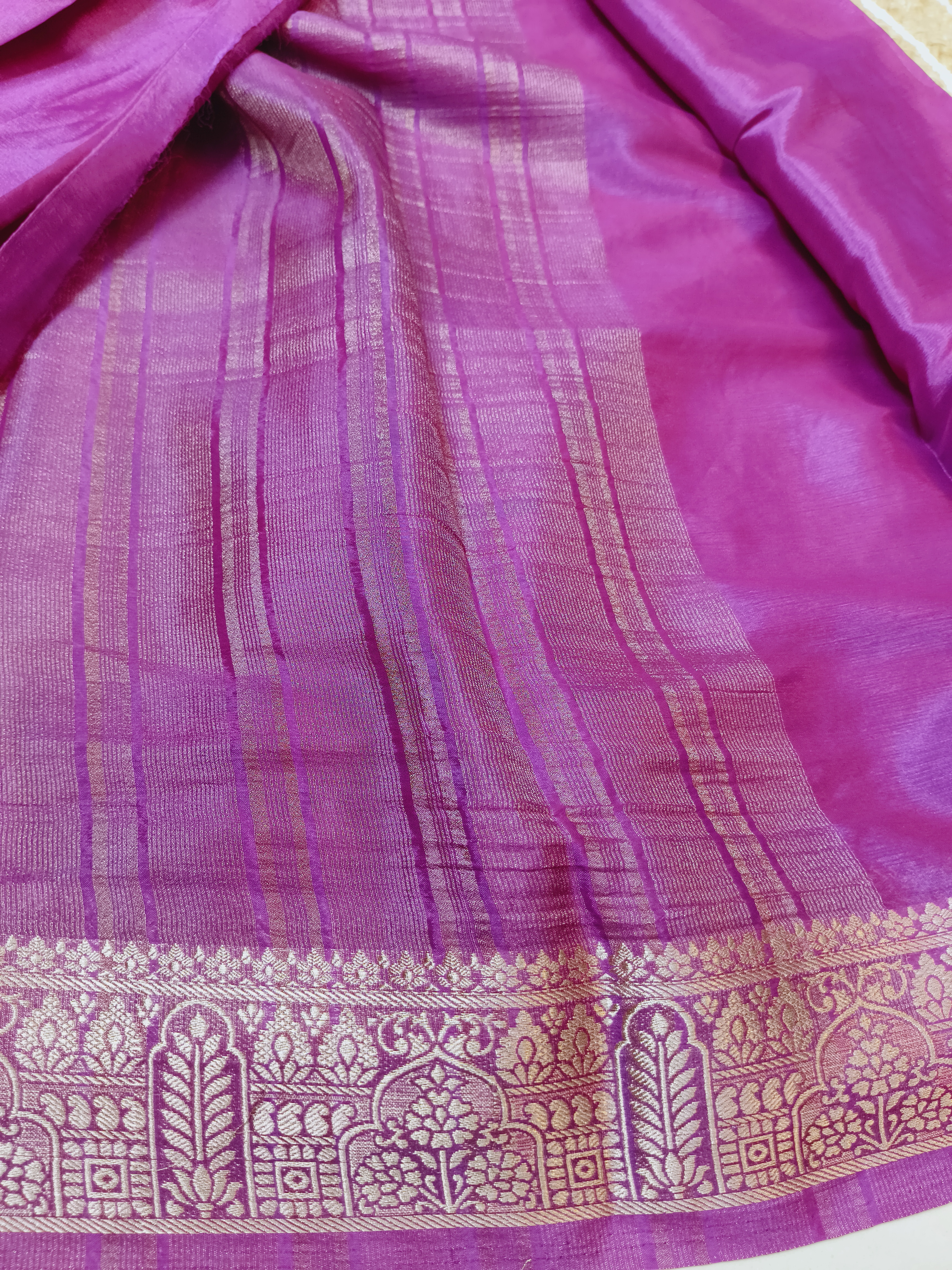 Elegant rani pink viscose georgette saree with a traditional zari border